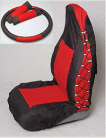 - Kit includes - 2 seat covers, 2 belt pads, and a steering wheel cover.